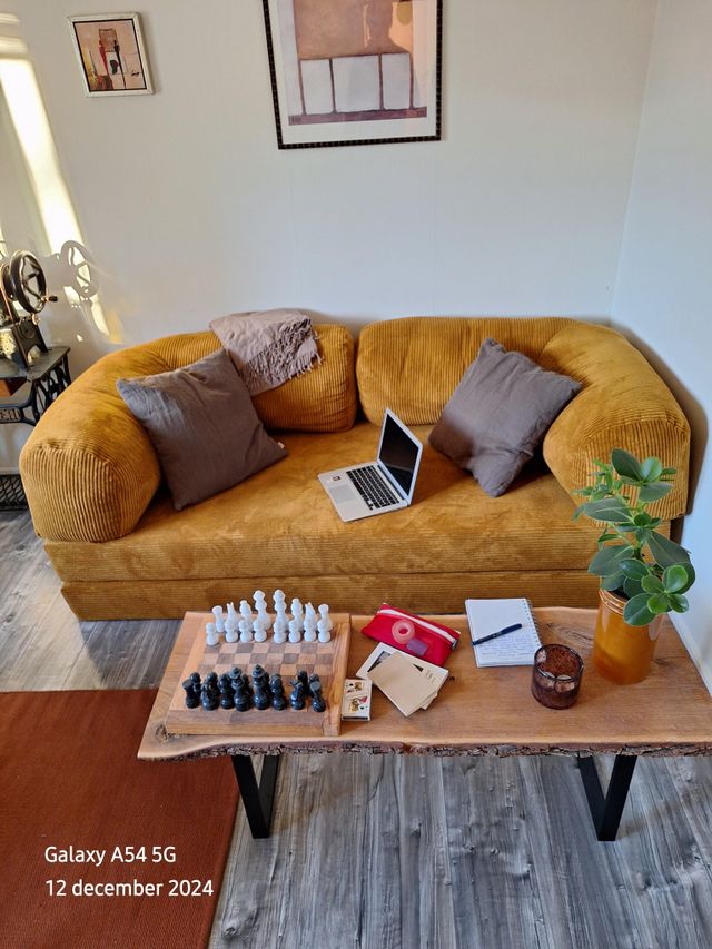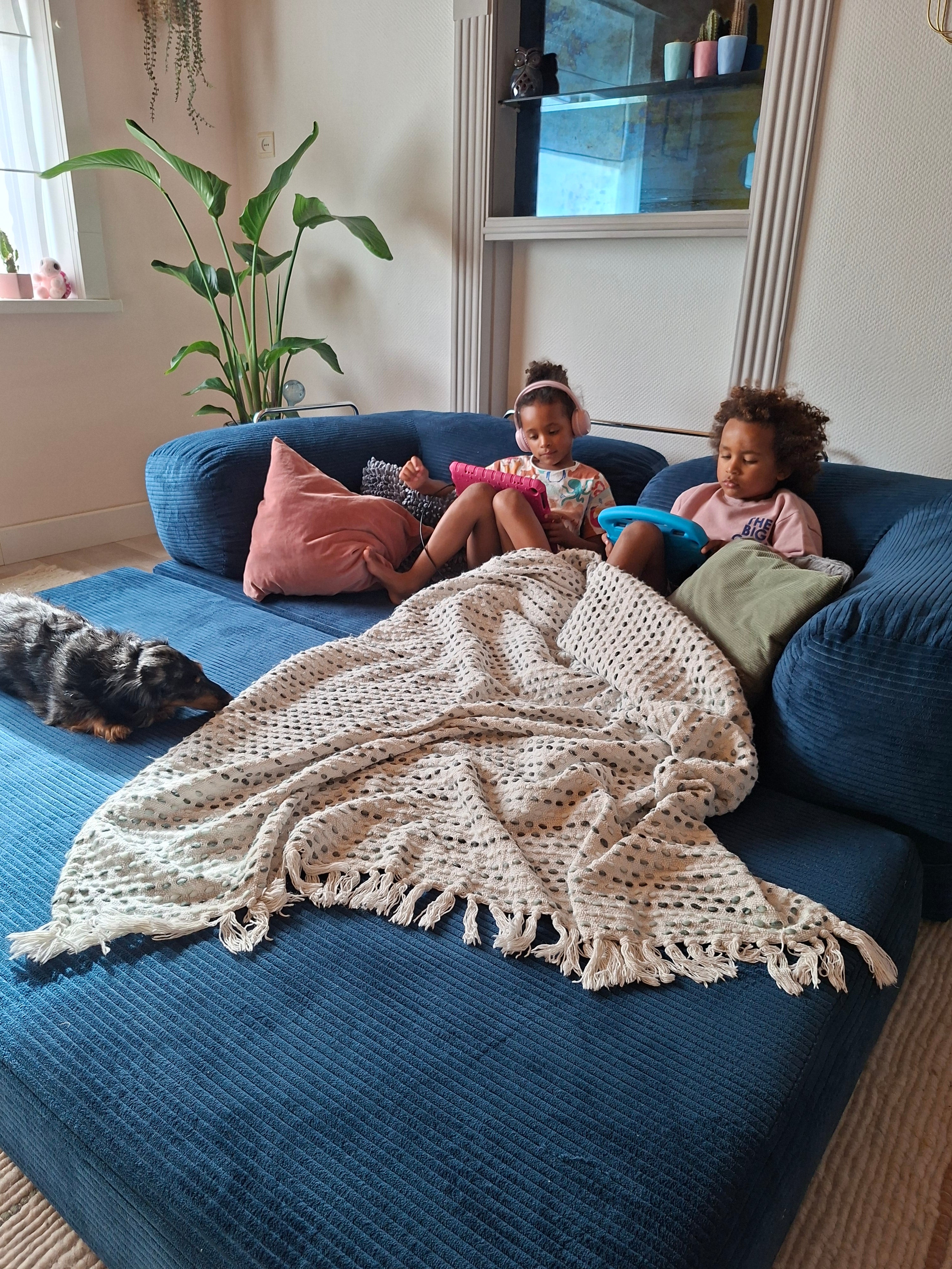 Je pense que ce canapé a un sort magique… chaque fois que je m’assois, je ne veux plus me lever. Même le chien est d’accord !